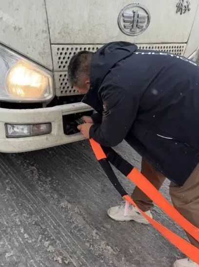 本日早上8点20分,詹时好意思已驾车抵达现场。“免费拖车!”风雪中,他的喊声给被困车主带来了但愿。在接下来的近三个小时里,他化身“拖车侠”,匡助近20辆被困车辆脱困。由于路面湿滑、脚底使不上劲,他干脆蹲在雪地上,留心翼翼地将拖车绳穿过拖车扣,然后使劲地打上结。这一崇拜专注的一幕,被多位被困车主看在眼里,他们纷纷拿脱手机,记载下这仁爱又感东说念主的一忽儿。有车主马上要给他转钱线路薪金,王人被他婉拒了。看到后续车辆不错常常上坡行驶,说念路规复常常,他又等了半小时后才驾车离开。