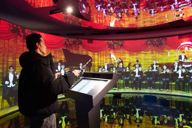 12月22日,北京国度大剧院,互动安装上,不雅众手捏带领棒,感受带领的魔力。当日,国度大剧院建院18周年公众灵通日艺术节在北京举行。视觉中国供图
