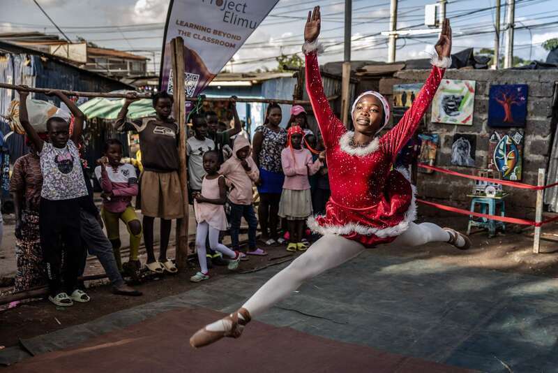 当地时间12月23日,肯尼亚内罗毕基贝拉穷人窟,芭蕾舞学生兼主要演员雪莉·阿吉安博在一场年度圣诞芭蕾舞扮演中登台。在内罗毕基贝拉的芭蕾舞学校,年青舞者们通过社区主导的艺术技俩学习古典芭蕾,培养步骤、创造力和自信。这些免费课程由肯尼亚跳舞家迈克·瓦马亚创办。视觉中国供图