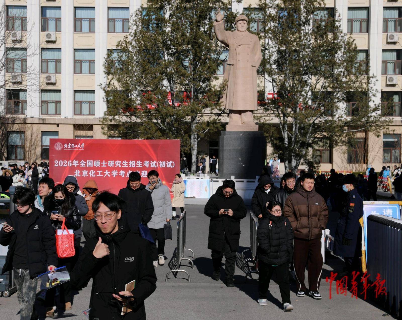 12月20日,北京化工大学考点,上昼的熟练兑现后,考生们走出科场,一位考生作念出点赞的手势。当日,2026年世界硕士推敲生招生熟练初试负责开考。中青报·中青网记者 陈剑/摄
