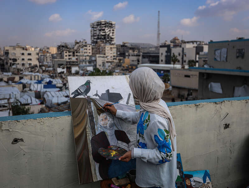 当地时间12月23日,巴勒斯坦加沙地带加沙城,15岁的巴勒斯坦画家萨雷在资源有限的情况下坚捏创作。萨雷无法取得稳健的画图材料,她用柴炭作画,神态被动退步风尘、饥饿、禁闭和平时生涯构兵,旨在向世界传达受冲突影响的加沙东说念主民的祸害。视觉中国供图